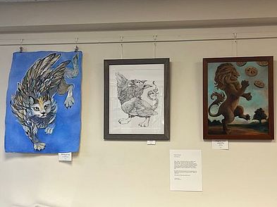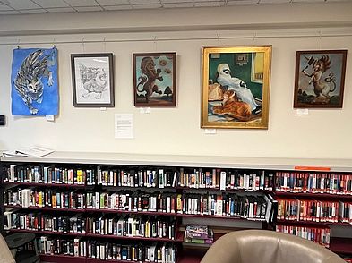 We offer wall space to local artists who might be interested in showing their work for up to two months. Both professional artists and those who pursue art or photography as a hobby are encouraged to show their work. The walls above our first floor lounge area are equipped with moldings and a zippered-hook cord system for easy hanging of up to 8 pieces. Additional display space is available over the bookshelves. The glass display space in our foyer is available for showcasing smaller 3D artwork and interesting collections. Art shows are promoted via our social media channels. Contact the library to make arrangements to show your work.