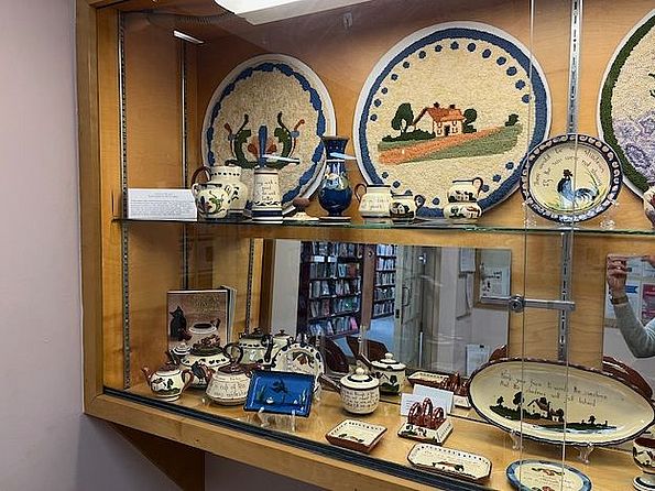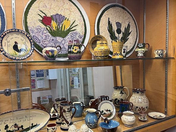 In March and April we are displaying Marcy Harding's torquay pottery collection, which feature both artwork and humorous or wise sayings.
