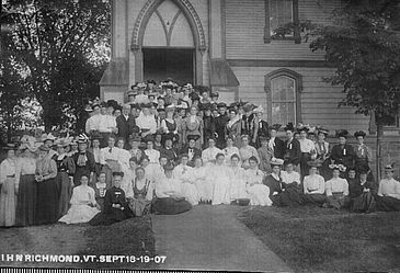 The building that is now the Richmond Free Library was built in 1879 as a church for the Universalist Unitarian Congregation. It served as a church until 1956, when the congregation decided to disband and sell the property to Richmond resident Walter A. Griffith, who then offered the property to the Richmond School District. Richmond voters accepted the gift at the 1957 town meeting and passed a $7,000.00 bond to transform the building into a cafeteria and gymnasium. Then, in the mid 1980s, a new elementary and middle school were constructed, and the premises was no longer needed. The school district deeded the building to the town, and in 1990, voters approved a bond to renovate the building’s first floor for use as a library. The library moved from its previous location on Depot Street to the newly renovated space in 1991. Construction for the second floor and mezzanine began in June 2002 and finished in January 2003. The second floor now includes two youth libraries and a large community space with a grand piano, and the mezzanine has a lounge and three study/practice rooms.