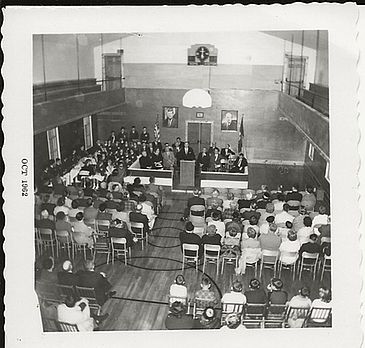 1957 - A gymnasium was built in the former sanctuary. The basketball court covered the entire floor, so balconies were constructed for the spectators.