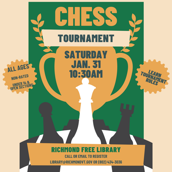 The Library will be hosting another chess tournament on Saturday, January 31, from 10:30 am - 1:30 pm. This casual, yet competitive, non-rated tournament will serve as an introduction to chess tournaments and USCF tournament…