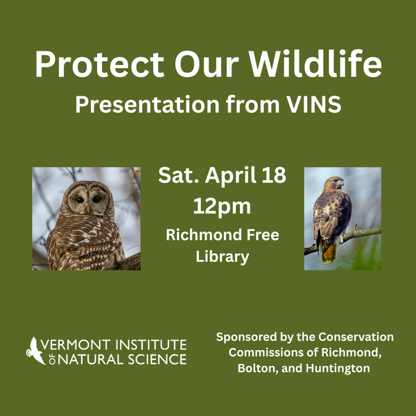 Join local conservation groups and the Vermont Institute of Natural Science (VINS) on Saturday, April 18 at noon for a special presentation about protecting wildlife from harmful rodenticides. VINS will have three ambassador…