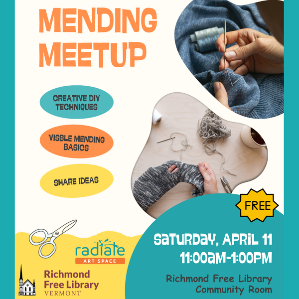 Shred a hole in your jacket while shredding on the mountain? Were your favorite pair of jeans letting in the arctic air? Did a moth make your sweater supper? We all have procrastination piles in the back of our closets... Let's work on them together! Join us on Saturday, April 11, at 11 am for a group mending session. Bring your clothes that need mending and any supplies you have. We’ll have tools, materials, and ideas to help you make your clothes new again. In collaboration with Radiate Art Space.