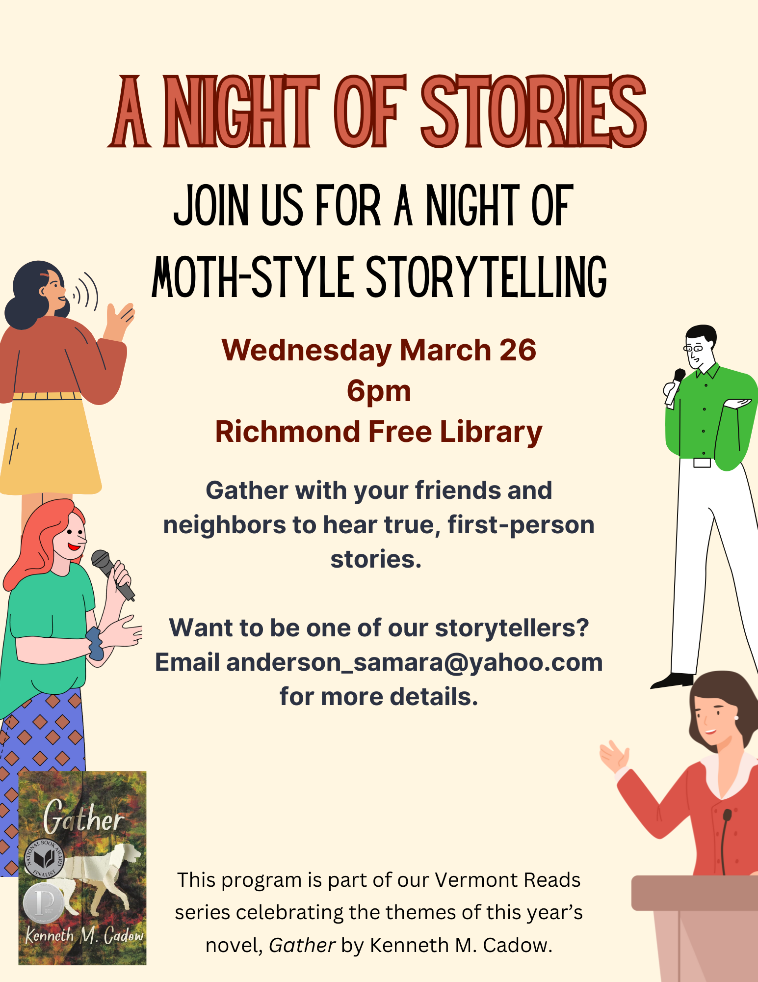 The library will be hosting a Moth-style storytelling event on Wednesday, March 26 at 6pm. Come hear true, first-person stories exploring themes of community, rural life, resilience, addiction and recovery, food and housing insecurity, a deep relationship to the land, bonds with animals, or class difference. If you’re interested in being one of our storytellers, please contact Samara Anderson at anderson_samara@yahoo.com for more details.