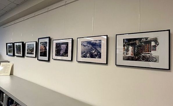 We offer wall space to local artists who might be interested in showing their work for up to two months. Both professional artists and those who pursue art or photography as a hobby are encouraged to show their work. The walls above our first floor lounge area are equipped with moldings and a zippered-hook cord system for easy hanging of up to 8 pieces. Additional display space is available over the bookshelves. The glass display space in our foyer is available for showcasing smaller 3D artwork and interesting collections. Art shows are promoted via our social media channels. Contact the library to make arrangements to show your work.